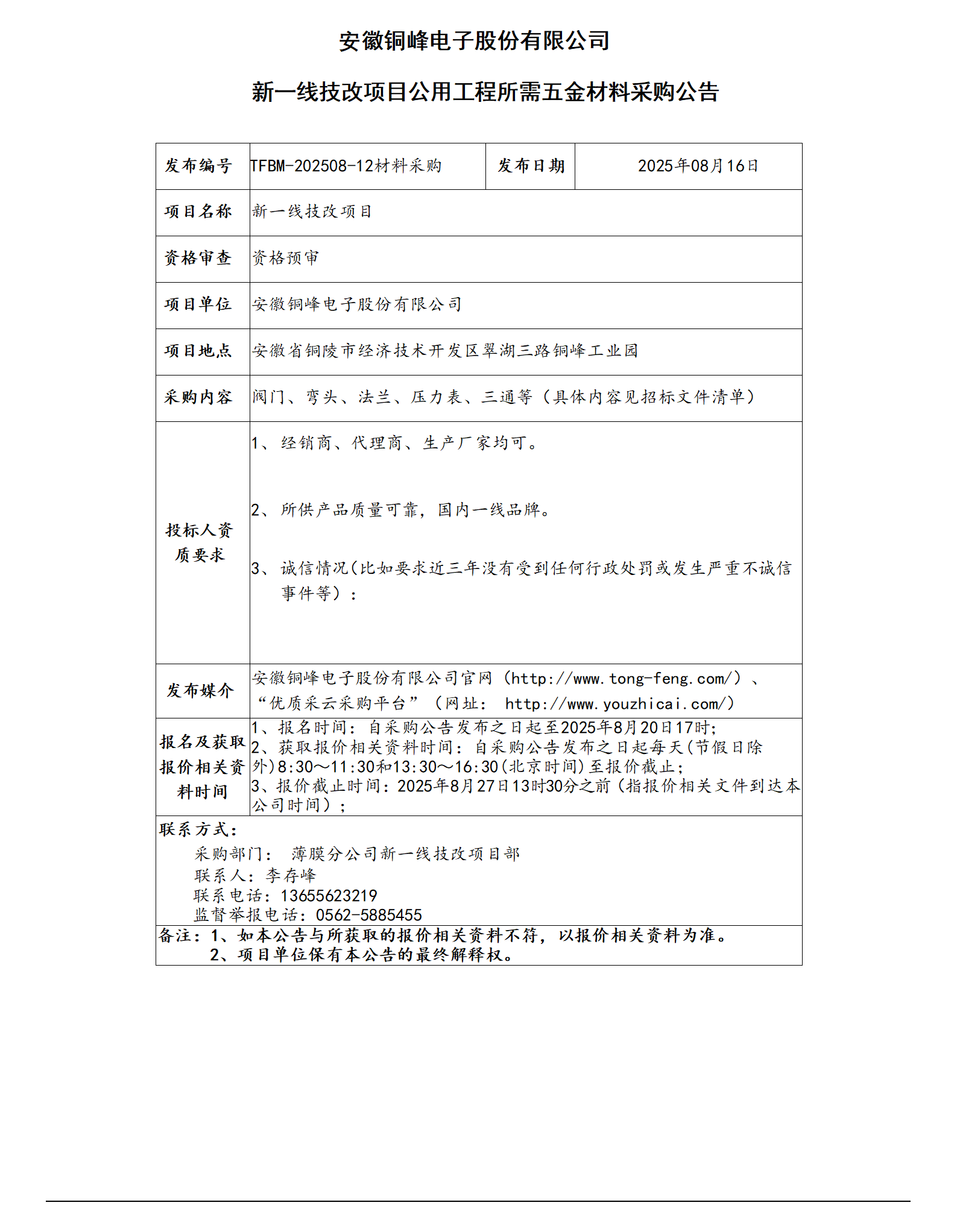 安徽銅峰電子股份有限公司 (新一線項(xiàng)目五金材料采購(gòu))_01